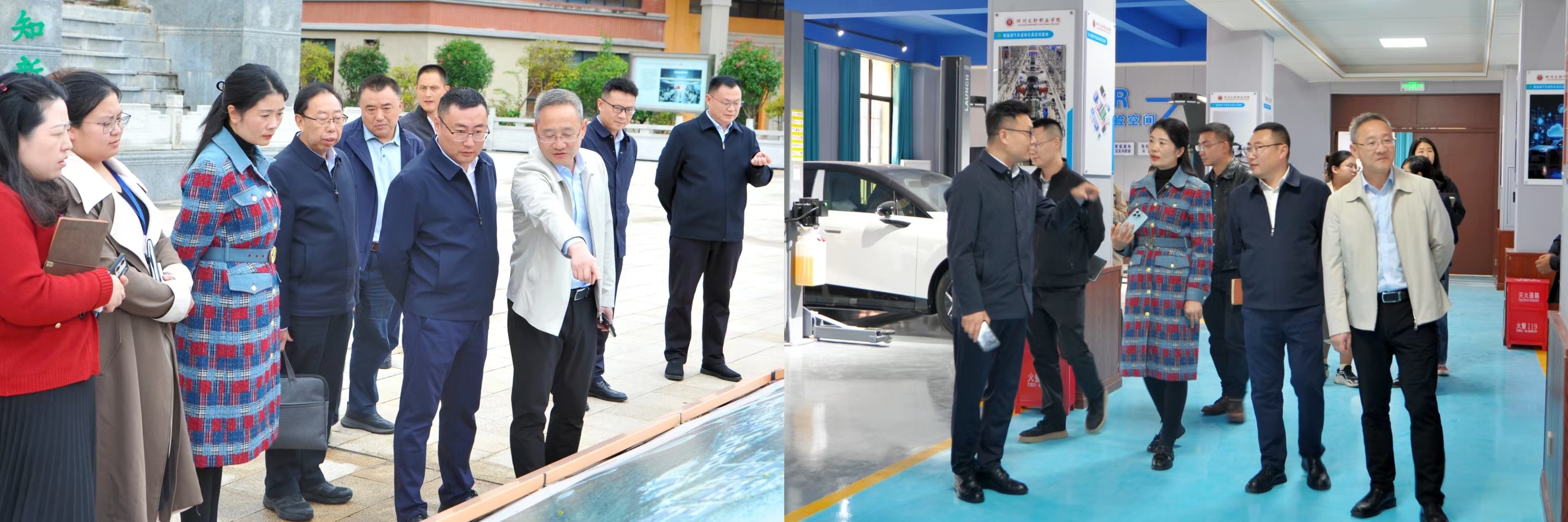 期间,余文盛等陪同刘志东校长一行参观了学校校园和实训中心。在医护实训中心,院长古天明教授全程介绍医学、中药学、护理、口腔医学技术、康复治疗技术等专业实训情况,现场观摩了护理专业学生基础护理技能实训。在新能源汽车实训中心,张毅副校长介绍了新能源汽车检测维修设备、VR虚拟实训平台及实训教学开展情况,直观呈现了“做中学、学中做”、理实一体沉浸式教学场景。此次交流座谈搭建起了两校高效沟通交流平台,实现了办学经验的精准传递与互鉴互补,大家表示将以此次交流为契机,持续加强互动协作,携手探索职业教育发展新路径,共同书写产教融合、校企协同育人的新篇章。