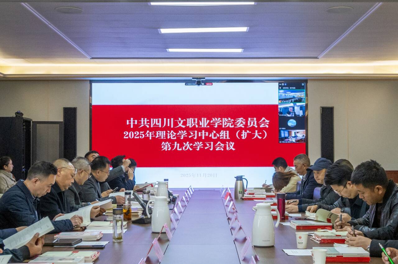 11月20日,学校党委召开2025年理论学习中心组(扩大)第九次学习会议。会议围绕“学习贯彻党的二十届四中全会精神”这一核心主题,组织开展了深入学习和专题研讨。学校党委书记余文盛主持会议并作中心发言,领学党的二十届四中全会精神,并作题为《深入学习贯彻党的二十届四中全会精神,锚定教育强国目标谱写学校高质量发展新篇章》的中心发言;党委委员、副校长李双李就学校“十四五”时期发展成绩与“十五五”规划作专题汇报;副校长,遂宁校区校长周勇,纪委书记吴松,成都校区副校长周红中三位同志结合分管工作实际,交流学习体会与落实思路。学校党委委员、党员校领导、各党总支、直属党支部及二级学院党支部书记参加会议。